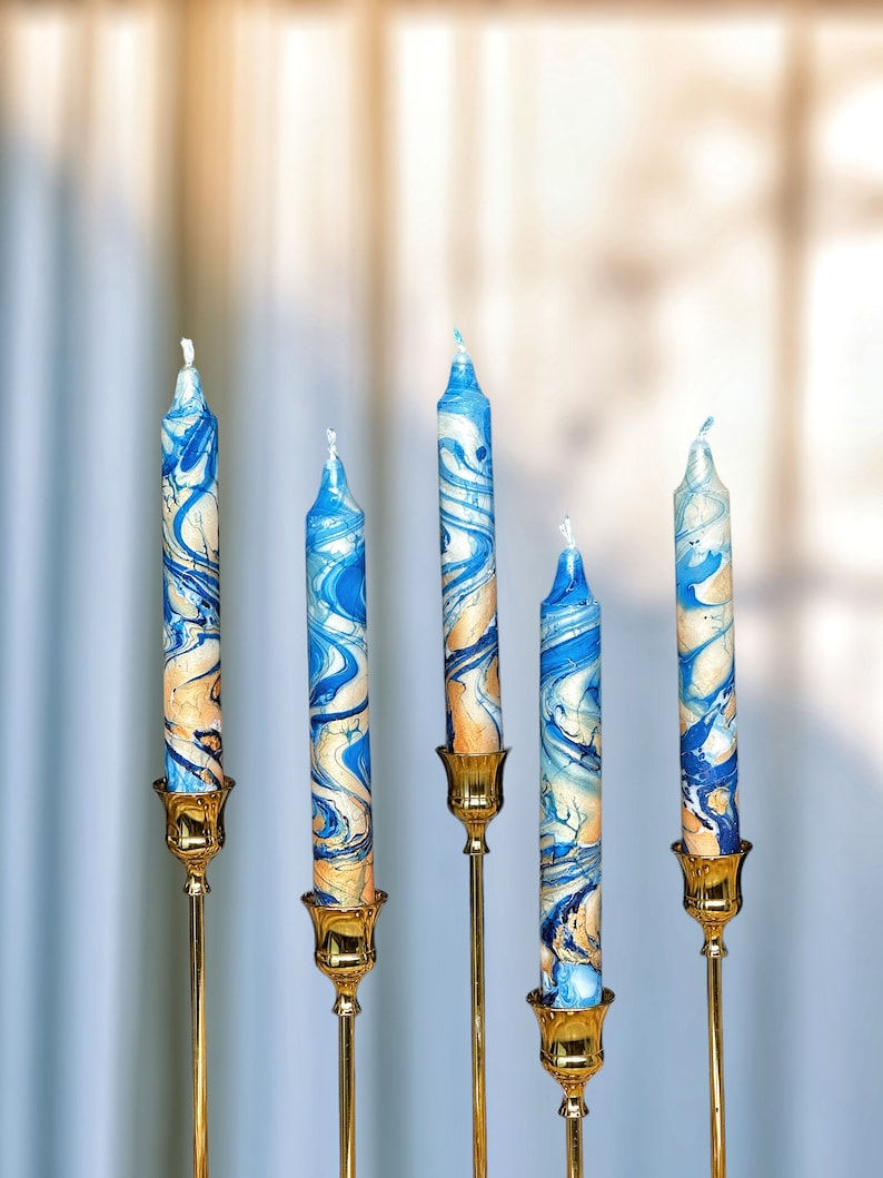 Each of these candles is individually handmade. These are hand-poured, and then hand-dipped to give them a unique marbled effect!