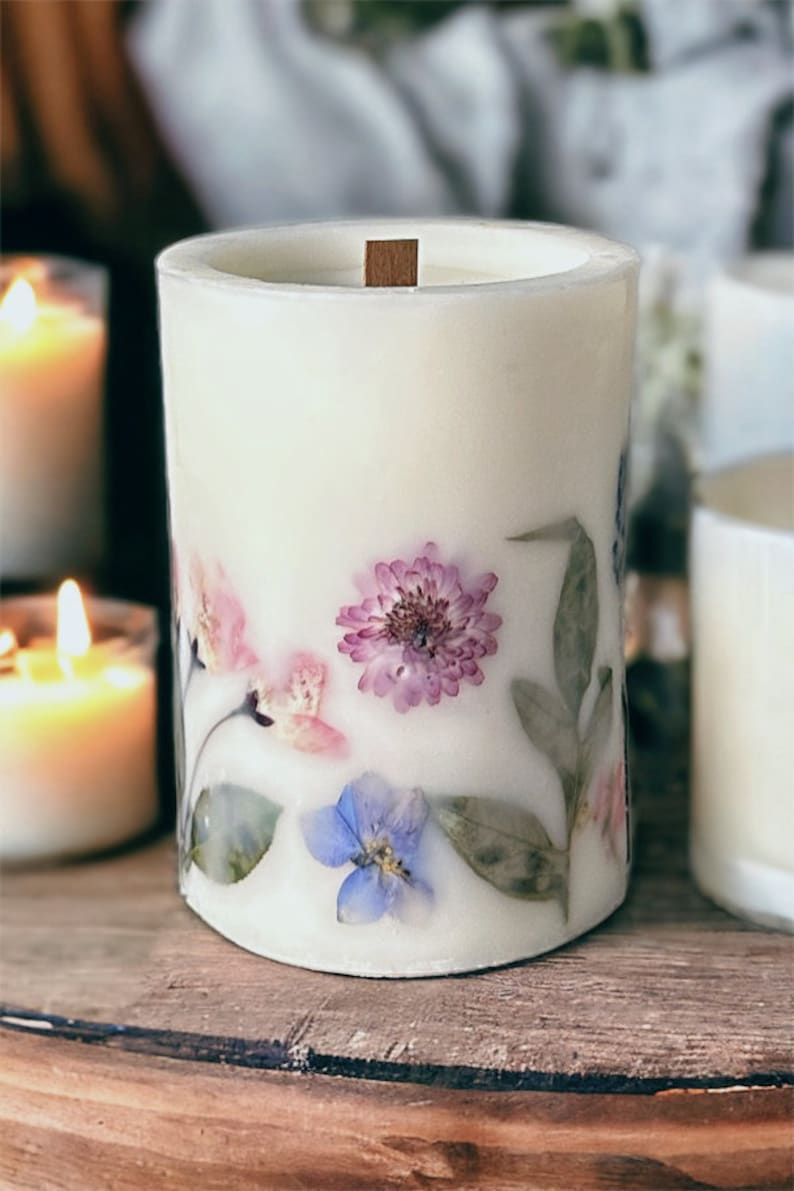 Bring all of the bright atmosphere of a fresh country garden into your home with this floral scented candle.