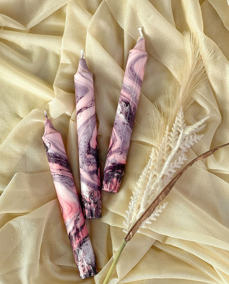 Marble Purple pink dinner candles